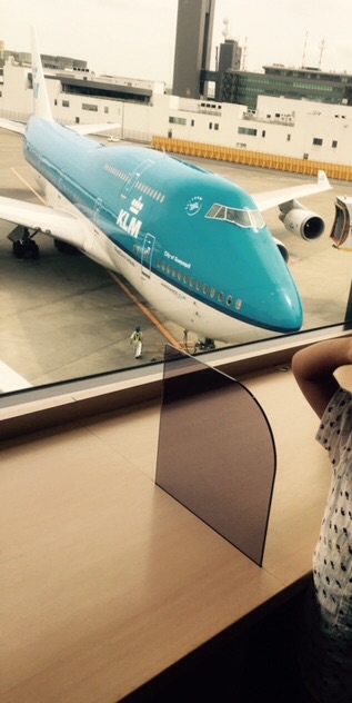 ガラス張りの所で近くにいたKLMの飛行機をパシャリ。