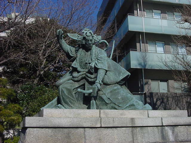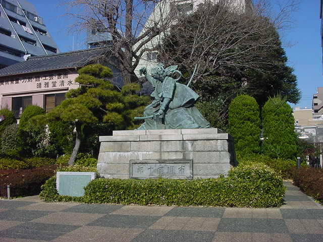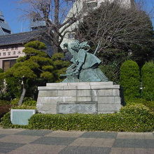 多くの観光客が集まる東京を代表する観光地、浅草・浅草寺境内にある銅像。歌舞伎界の最高峰と言われた市川団十郎の十八番「暫」の像です。浅草寺の中でも一番奥、観光バスの駐車場になっているところにひっそりと建っていました。