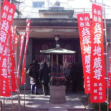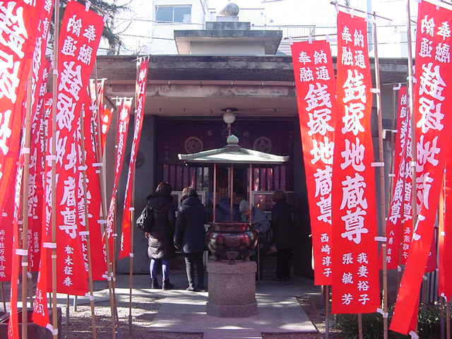 外国人も多く訪れる観光地、浅草の「浅草寺」境内にある地蔵尊。1964年に再建された堂の中には、四角い石塔の上に石の六地蔵尊をまつってあります。浅草寺の中でも一番奥に位置していますが、ここまで来る参拝者も多くにぎわっていました。