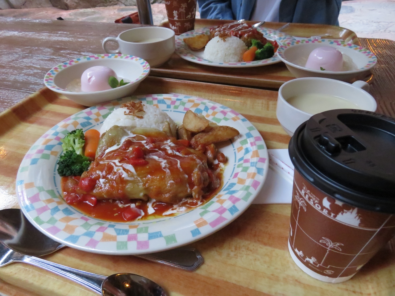 レストラン内は結構、広く上の階と下の階があり、下の階で支払い、受取り、テーブルは各自で探す仕組み。