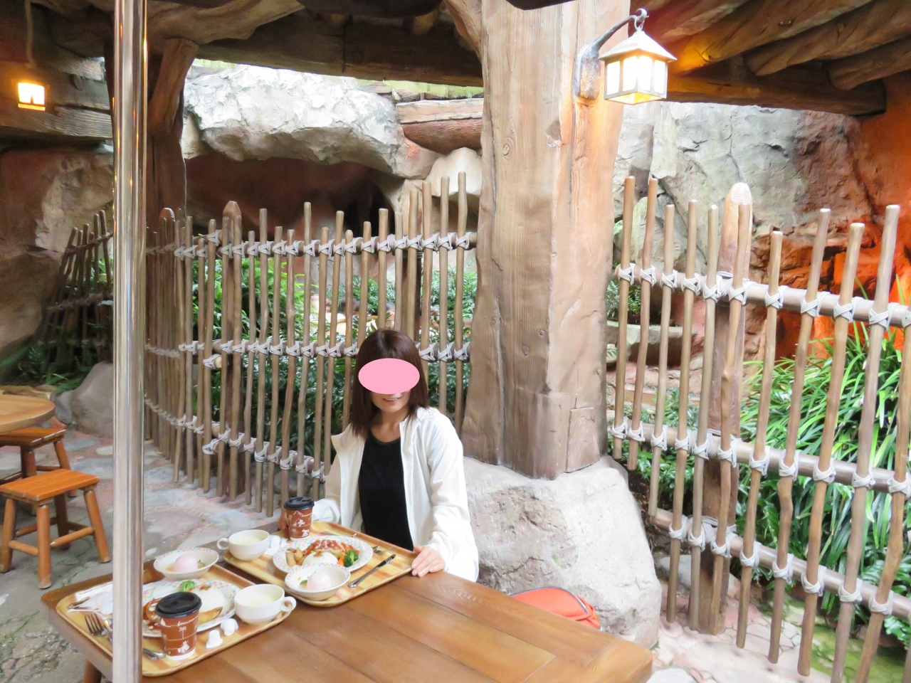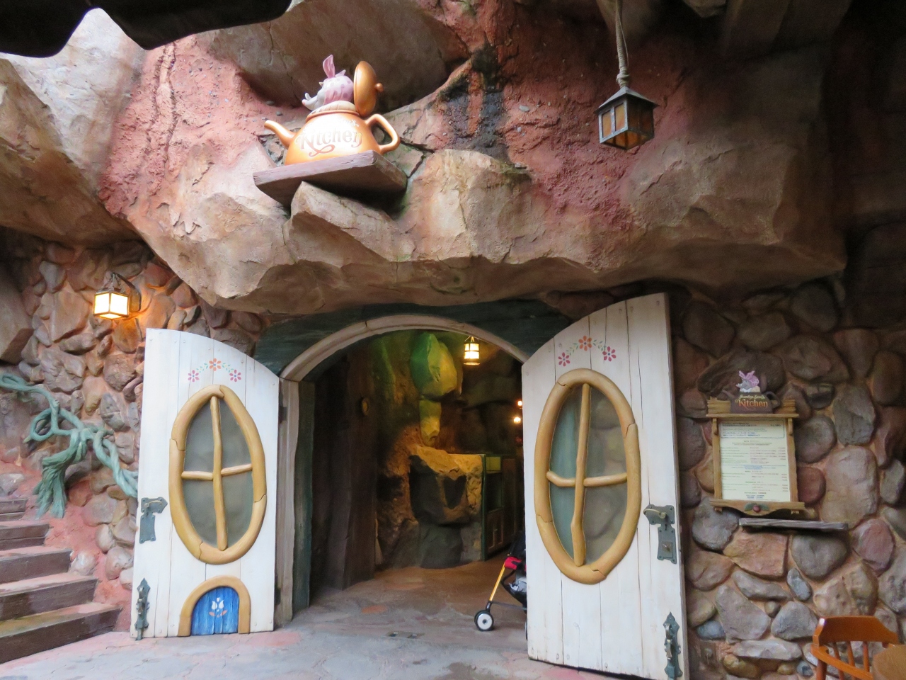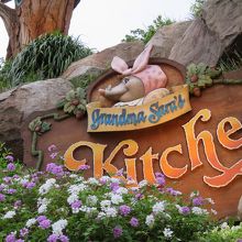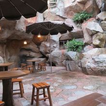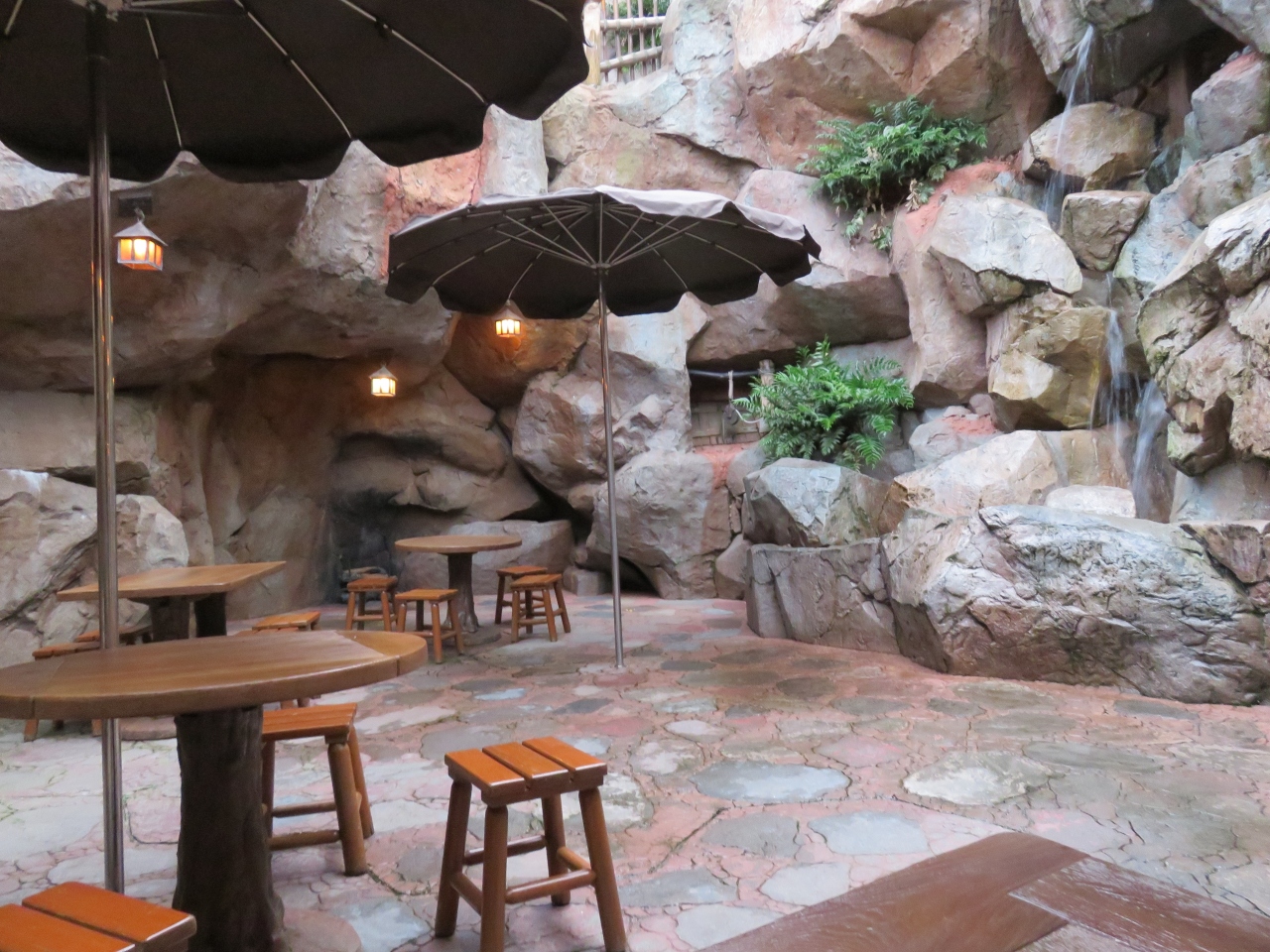 水の流れがある小さなエリアは気持ちよく・・・といきたいが、スプラッシュ・マウンテンの乗り物の通り道。