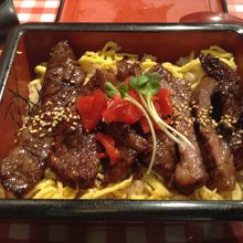ランチで、中落ち牛カルビ重1280円を注文。税込で1380円になるので、場所がらか少し割高な感じもしますが、ただ、カルビは柔らかく、甘みもあって、するする完食してしまいます。贅沢なランチでした。