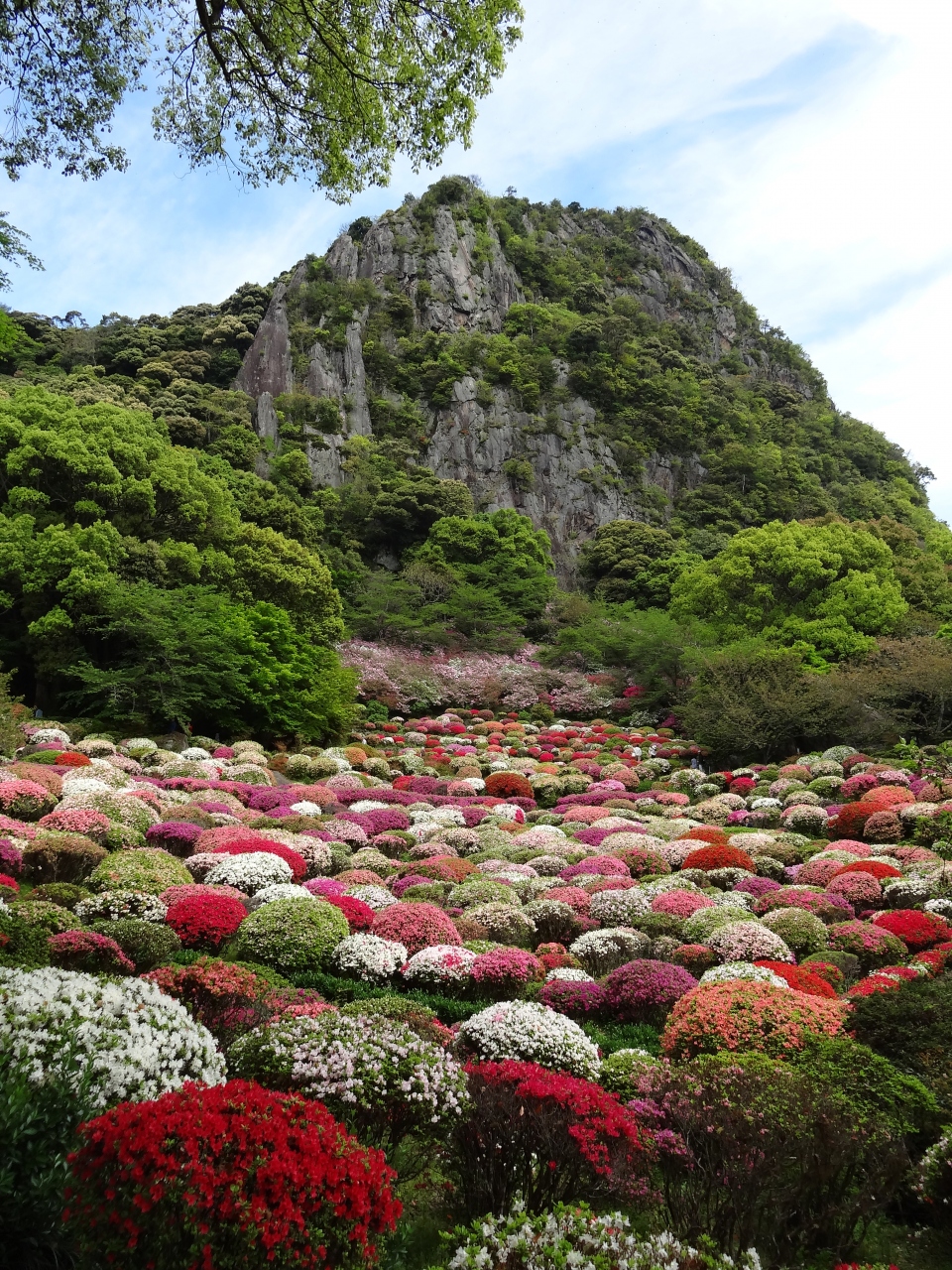 GW前に御船山のふもとにある御船山楽園へ出かけてきました。御船山の切り立った断崖を背景に、あたり一面カラフルなつつじがいっぱい咲いていました。大藤やアジサイはちょっと早かったかなぁ。その他に3月は「桜」5月は「大藤」6月は「さつき」といろいろな季節を楽しむことができます。秋の紅葉では、茶屋で和菓子とお茶をいただきながら秋景色を鑑賞するのもよかったです。御船山楽園のHPに開花情報が載っていますで、お出かけ前にチェックされると良いと思います。