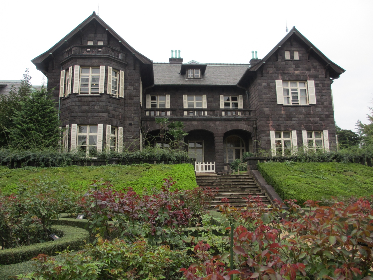 バラの季節をはずして行ったので写真にバラは写っていませんが、春と秋はバラ園がきれいです。上中里駅と駒込駅の間にあり、正門に芝生がその先に洋館が建っていて、斜面に洋風庭園が、低地には日本庭園があります。洋館は事前申し込みをするとツアー見学ができます。約1時間、ゆっくり館内を見学できます。洋風庭園から日本庭園へ違和感なく変わっていきます。