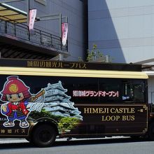 姫路城周辺を周回している「城周辺観光ループバス」、レトロ調のボンネット型バスです。