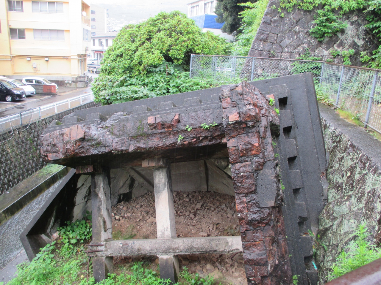 聖堂の外には、原爆に威力で吹き飛んだかつての北側の鐘楼が横たわったいます。