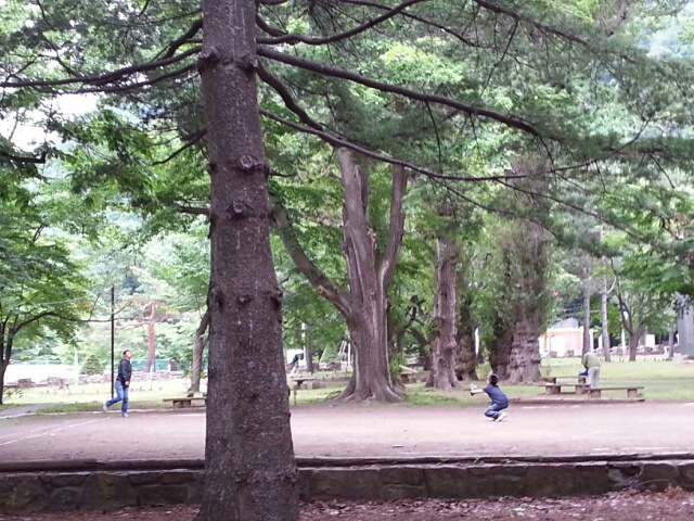 少し離れたところでは 親子と思われる二人がキャッチボール。