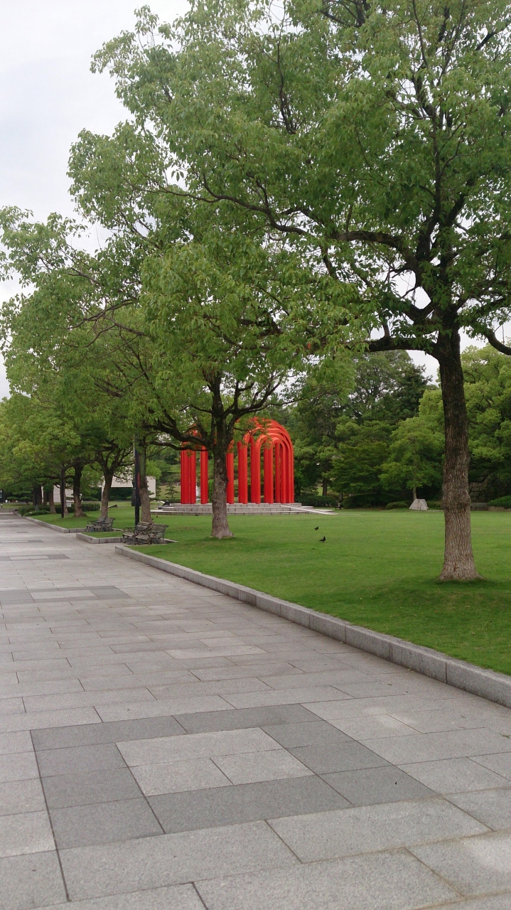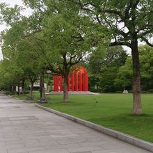 また、この美術館の前の赤い巨大な鉄のフレームのオブジェがあって、見る者を強烈にひきつけるパワーをもったオブジェでこの美術館のシンボル的な存在で非常に印象的です。