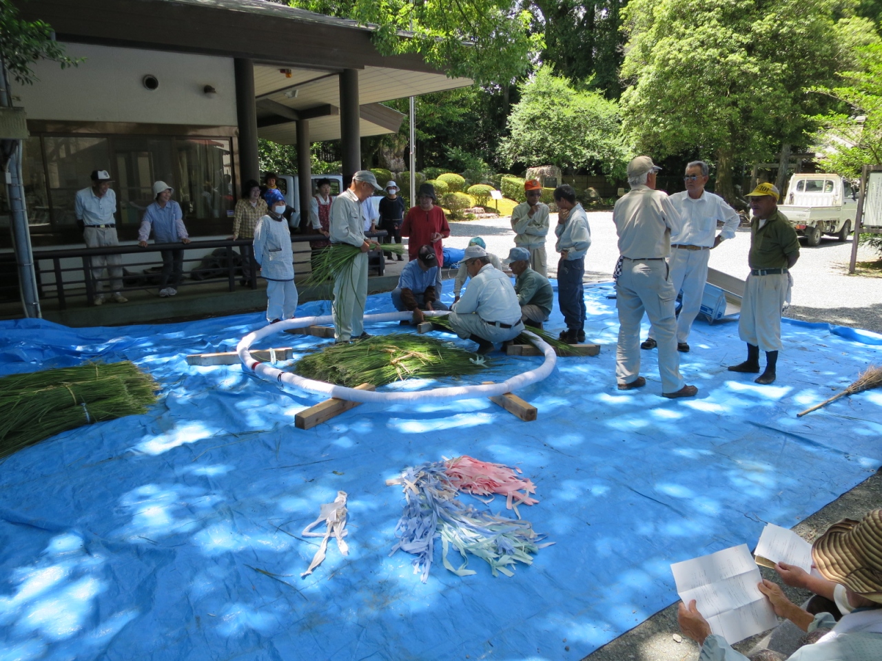 私が行った時は、本堂横の社務所で氏子のみなさんが総出で輪潜りを作っていました。