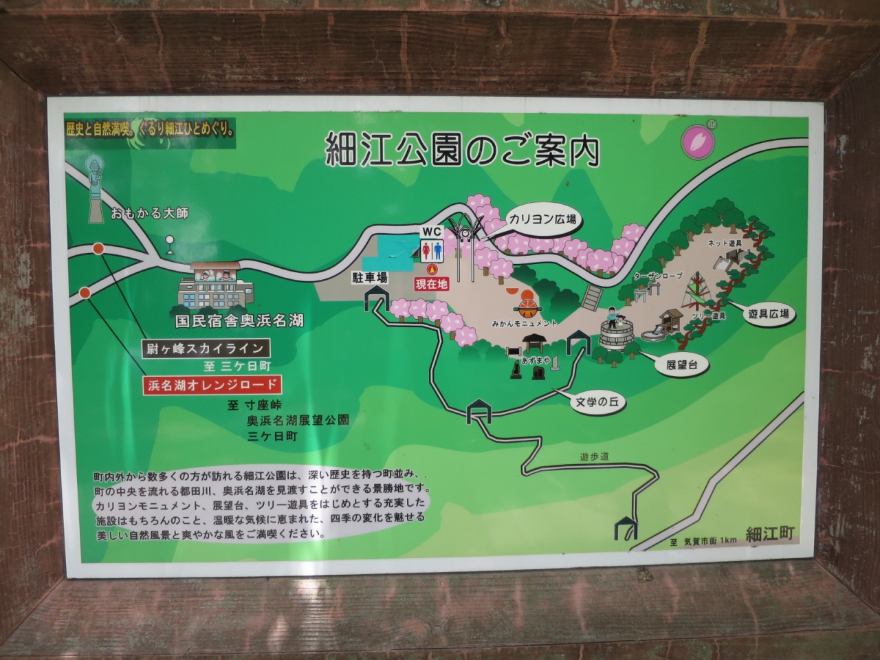 気賀の街から小高い山に細江公園があります。公園の上には、展望台があります。その展望台からは、奥浜名湖が一望できます。素晴らしい眺めです。浜松市街地も見えます。(アクトタワーも見えますよ!)