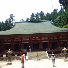 比叡山延暦寺の西塔地区の一番奥にあるお堂です。駐車場から坂を下り、左に曲がったところに常講堂・法華堂があり、その先にこの大きなお堂があります。西塔地区の中心的な建物です。本当の名は転法輪堂ですが、本尊に釈迦如来を祀ることから釈迦堂と呼ばれているそうです。延暦寺に現存する最古のお堂で、織田信長の焼き討ち後、別の場所にあった建物を豊臣秀吉の命により移築されたそうです。正面の柱間が全て戸口になっていて、開放感があります。国の重要文化財です。