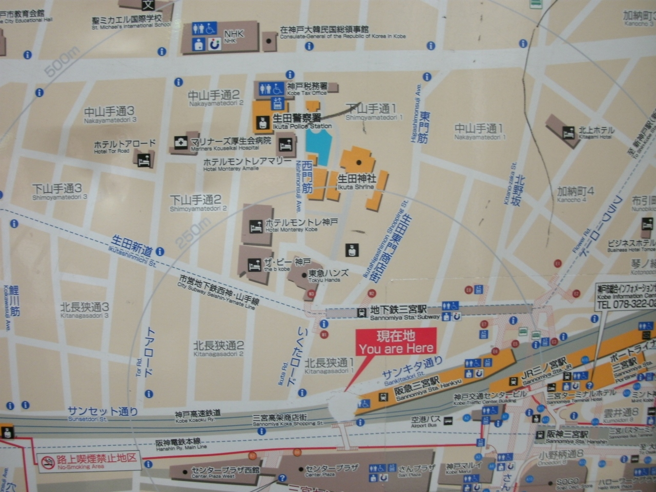 神戸を代表とする繁華街の通りで、通りの両側には飲食店やカラオケ店など数多くの商業施設が軒を連ねています。車の通行も多く、歩道はそこそこ広くて歩行者も多く結構賑やかです。飲食するのには適していますが、観光的には特別観るべきものはありません。