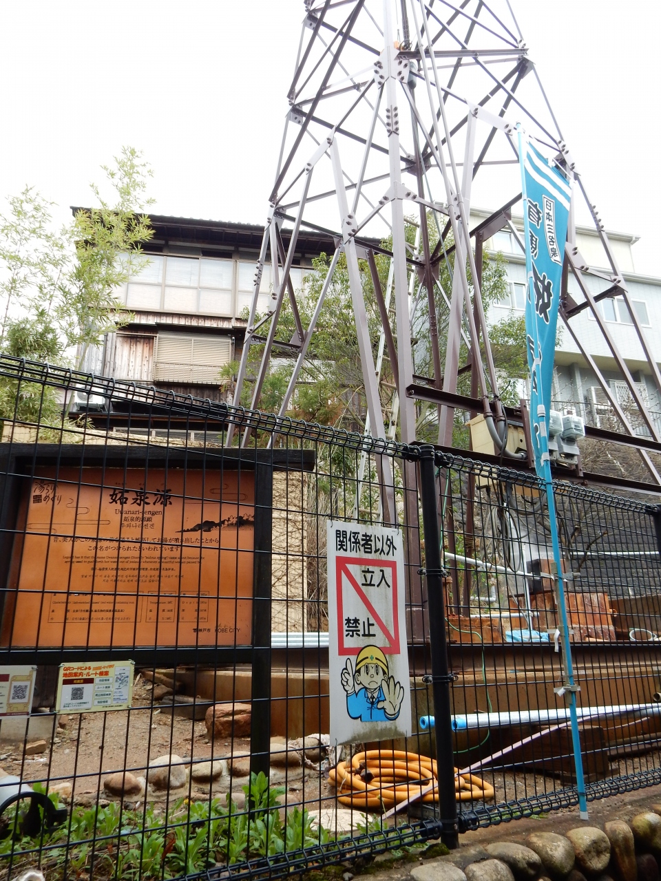 昔の泉源には鳥居が建っているのですが、そこは既に枯渇していて、今は裏手に新たな線源が掘られています。
