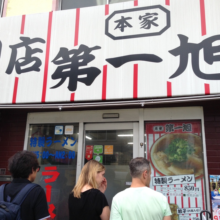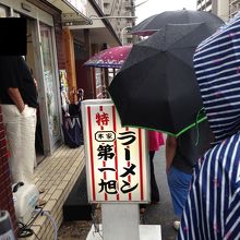 口コミの評価が良かったのでここ「第一旭」の特性ラーメンを食べに行ってきました。評判通りの行列で小雨にもかかわらず約20分外で待ちました。しかしやさしいですね、店の厨房の窓からおじさんが傘を渡してくれ、それを使用しそう濡れずに待つことができましたね。注文はおすすめの「特製ラーメン」をいただきました。さらっとした醤油味でしょうか、私にとってはちょっと麺の量が多く感じました。美味しかったですが、私は豚骨が良いですね。