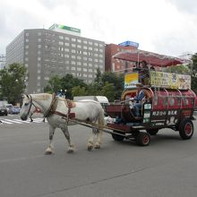 札幌大通り公園の風物詩です。4月下旬から11月初めまで運行します。コースは時計台コースとテレビ塔コースがあり、およそ40分ほどの乗車になります。一階席と二階席があり、二階席の方がやや高くなっています。暖かい日差しの中、ぽこぽこ馬車に揺られながら、馬車優先の道路を散策するのもおつなものです。