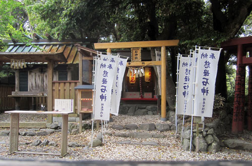 石神さんの前には、記念写真が撮れるようにカメラ台がある。