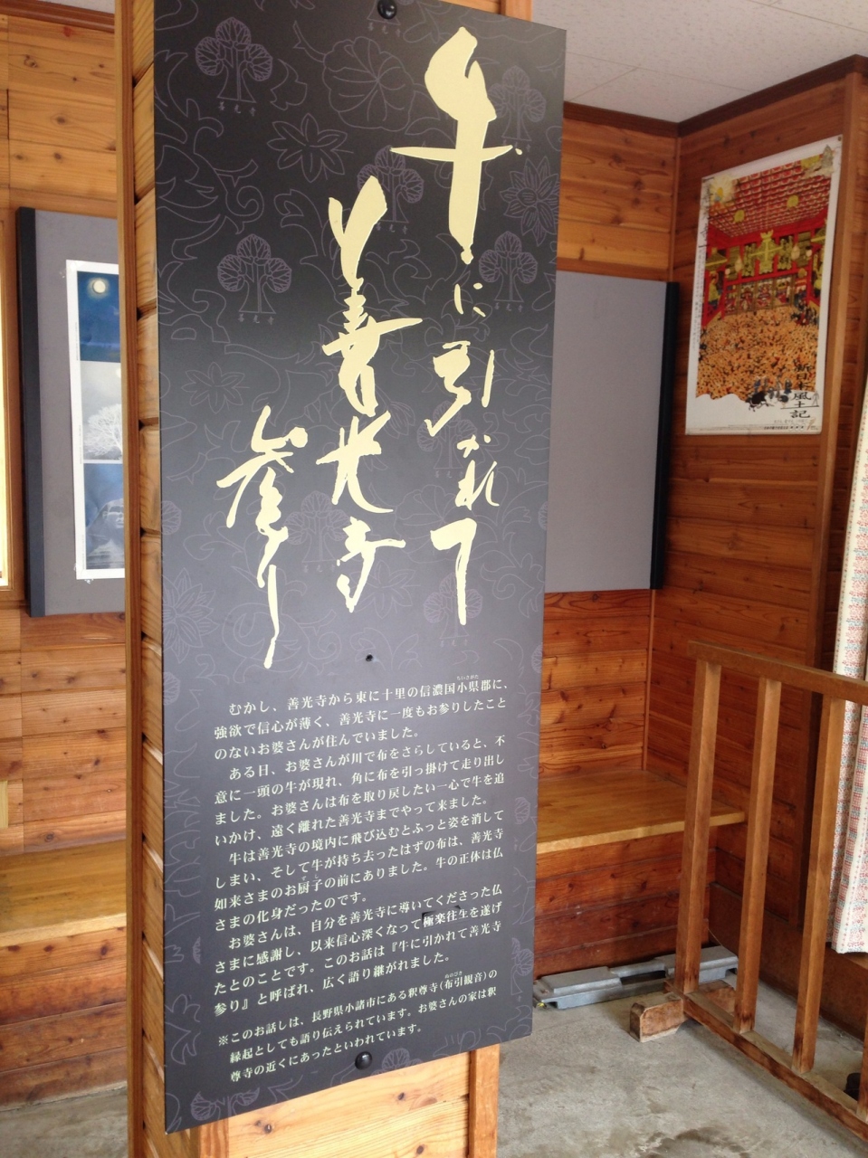 ツアー客のガイドさんの話を横で聞いていたら、『善光寺の善の字が牛のお顔に見えます…これぞ 牛に引かれて善光寺参り』 とアナウンス。ほ~確かに。ちなみに善の字の上のチョンチョンは小鳥にも見えるとも。