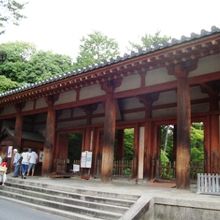 唐招提寺の入り口である南大門。当然のことながら、ここをくぐらないと中に入ることはできない。朱塗りの建物であるが、朱がだいぶ剥落している。しかし、この門は比較的新しいものであるという。前の道が広くないので、通行には注意が必要だ。