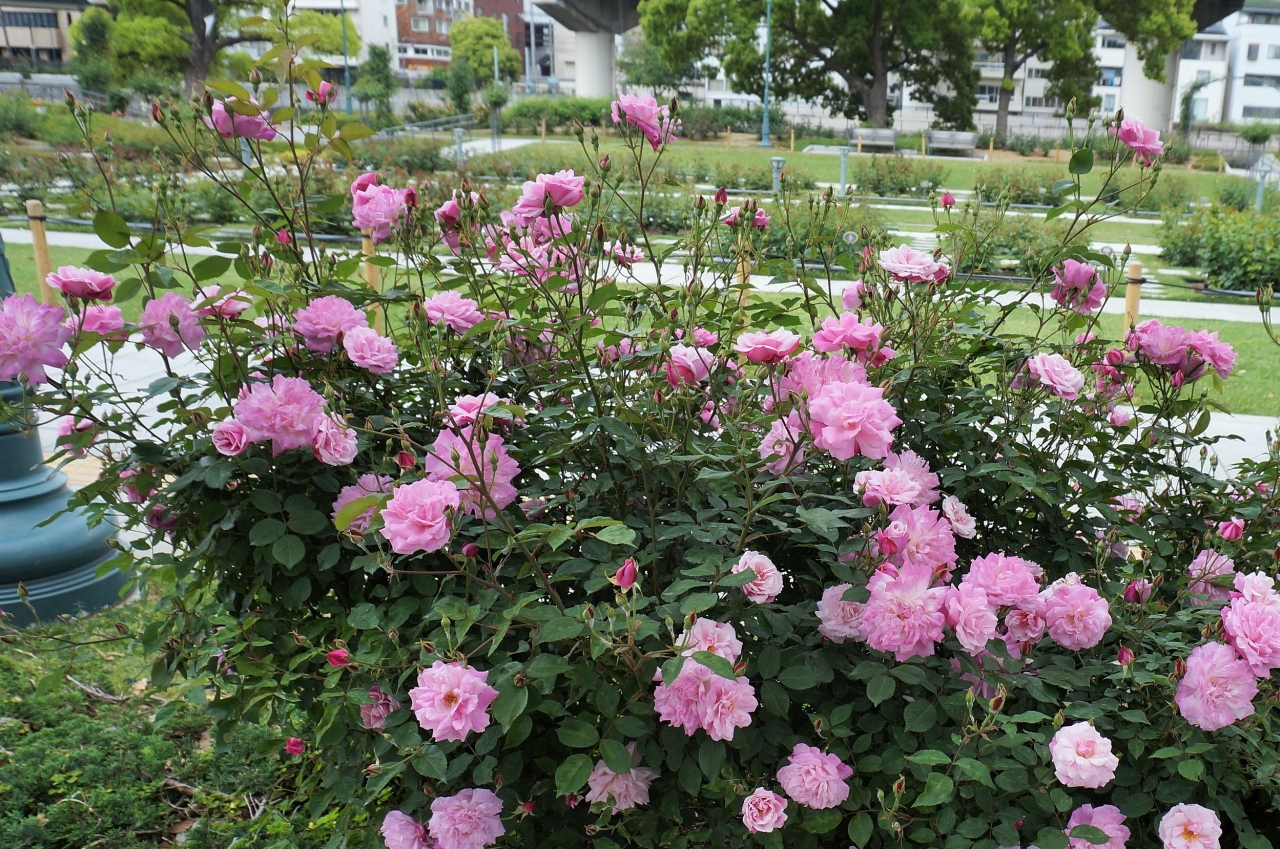 季節になると公園内のバラ園に美しいバラが咲き誇り、大阪市のバラの名所となってます。