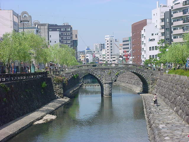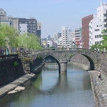 長崎市内中心部の観光地として知られるのが眼鏡橋ですが、そこから川沿いにある公園です。ゆっくり歩きながら、さまざまな石橋を見るのも楽しく、また遊歩道には花壇が美しく整備されています。市内電車で行くと賑橋から歩いてすぐで便利です。