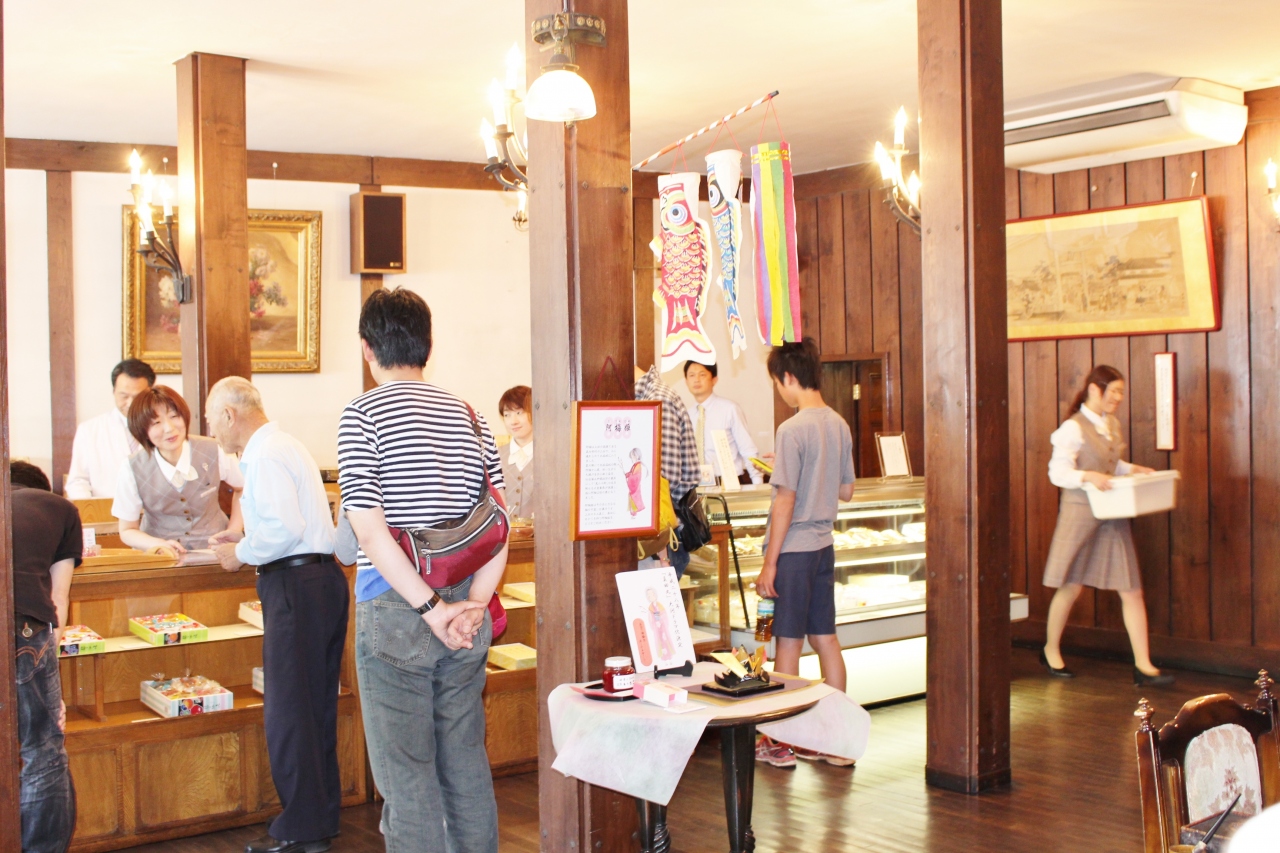 上田駅から近い商店街の中にあり、建物が登録有形文化財に指定されています。大正時代に建てられた木造建築ですが、「石目地」という独特の工法により、まるで石造建築のようです。内装もどこかのお屋敷の応接間のようで、お菓子を買うのもとても楽しかったです。みすず飴は、色も綺麗でお土産にして喜ばれました。