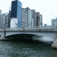大阪市営地下鉄堺筋線の北浜駅の26番出口からすぐのところにあります。中之島を挟んで土佐堀川と堂島川の2つの川を渡る。橋の中央で下流側に中之島通を分岐させ、上流側に中之島公園へ降りる階段が設けられています。