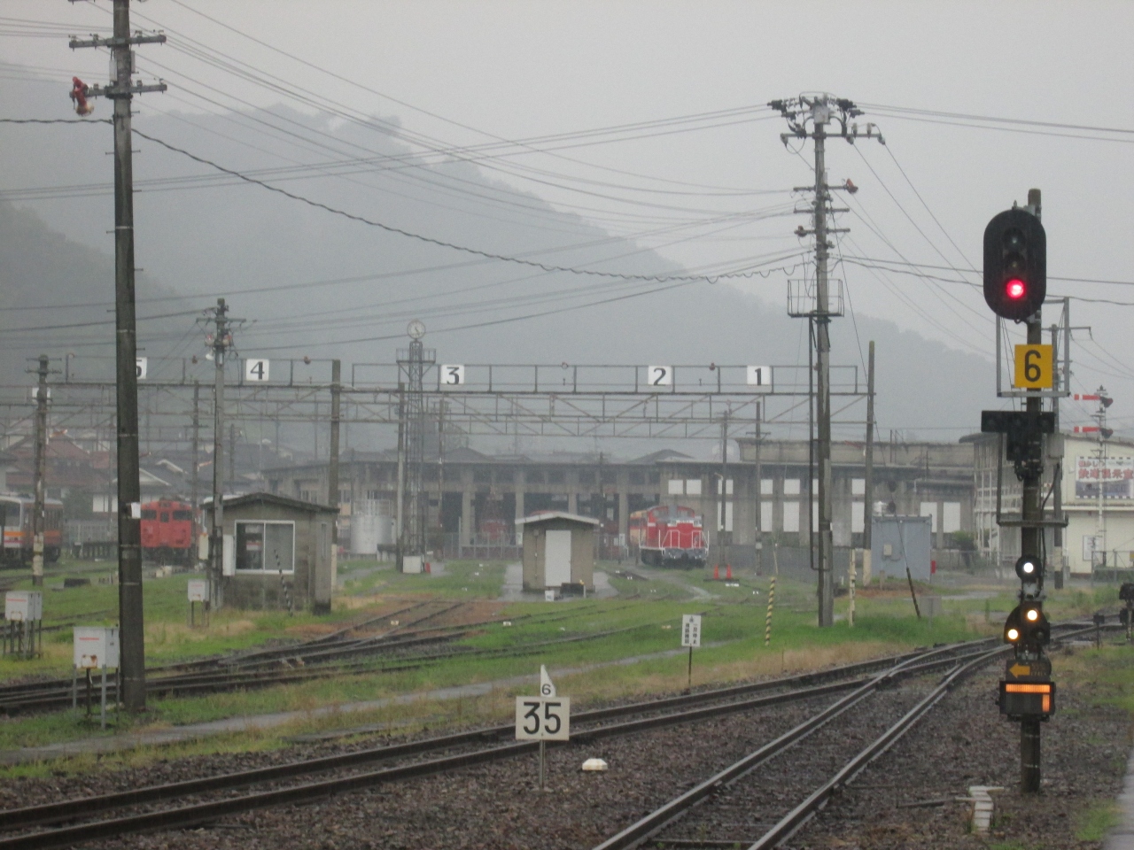 津山駅の到着の少し前に車内から車庫の位置を確認することができましたので、改札を出て徒歩で車庫の周辺に向かいましたが、現在も稼働中の施設ですし、付近は住宅街で特に公園のようになっているわけでもないので、静かに見学をして戻って来ました。