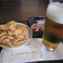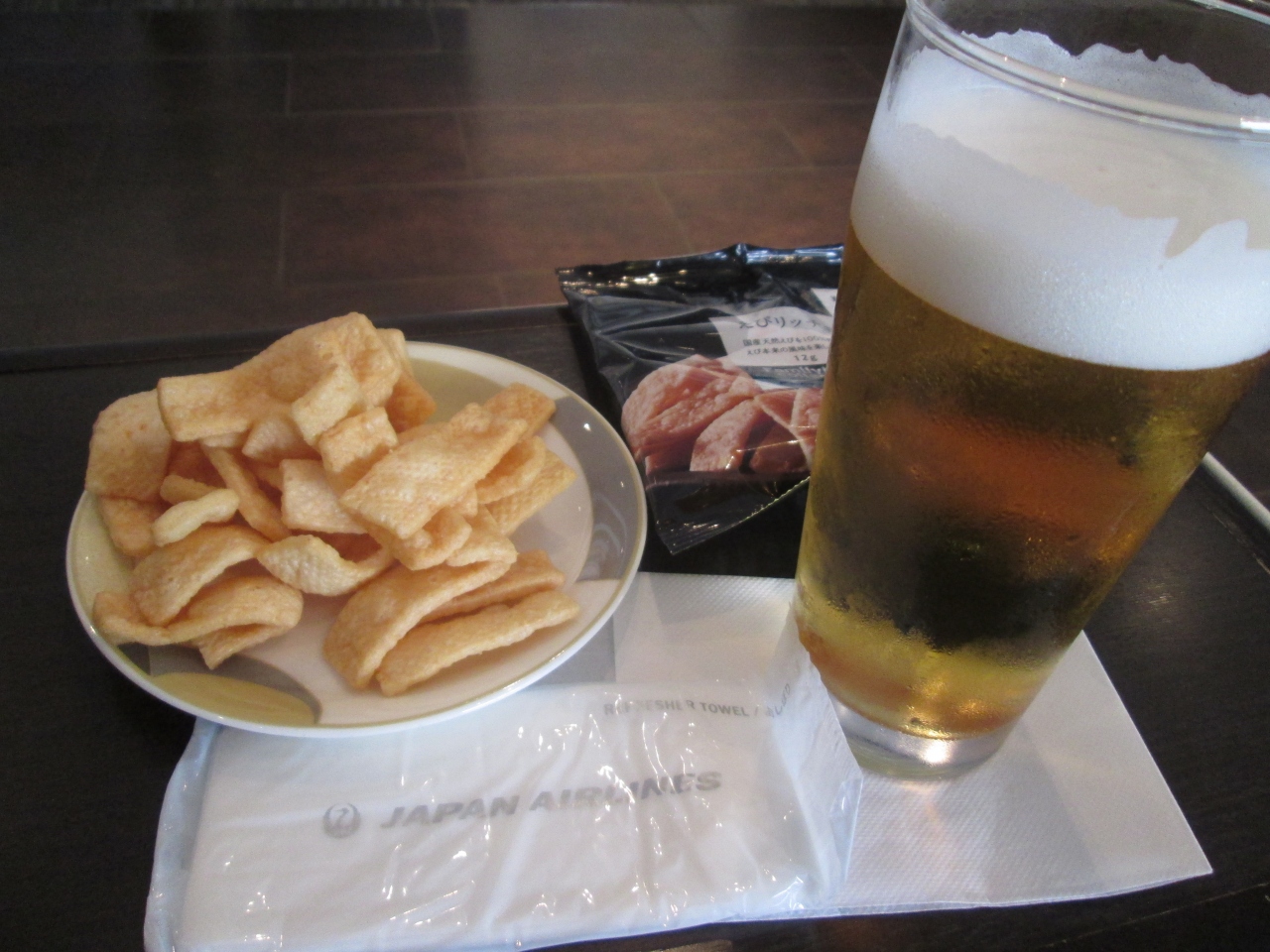 入り口でICカードをかざして入場するのも初体験でしたが、その後はいつもの生ビールが出迎えてくれたので、搭乗前のひと時をゆっくりと過ごすことができました。