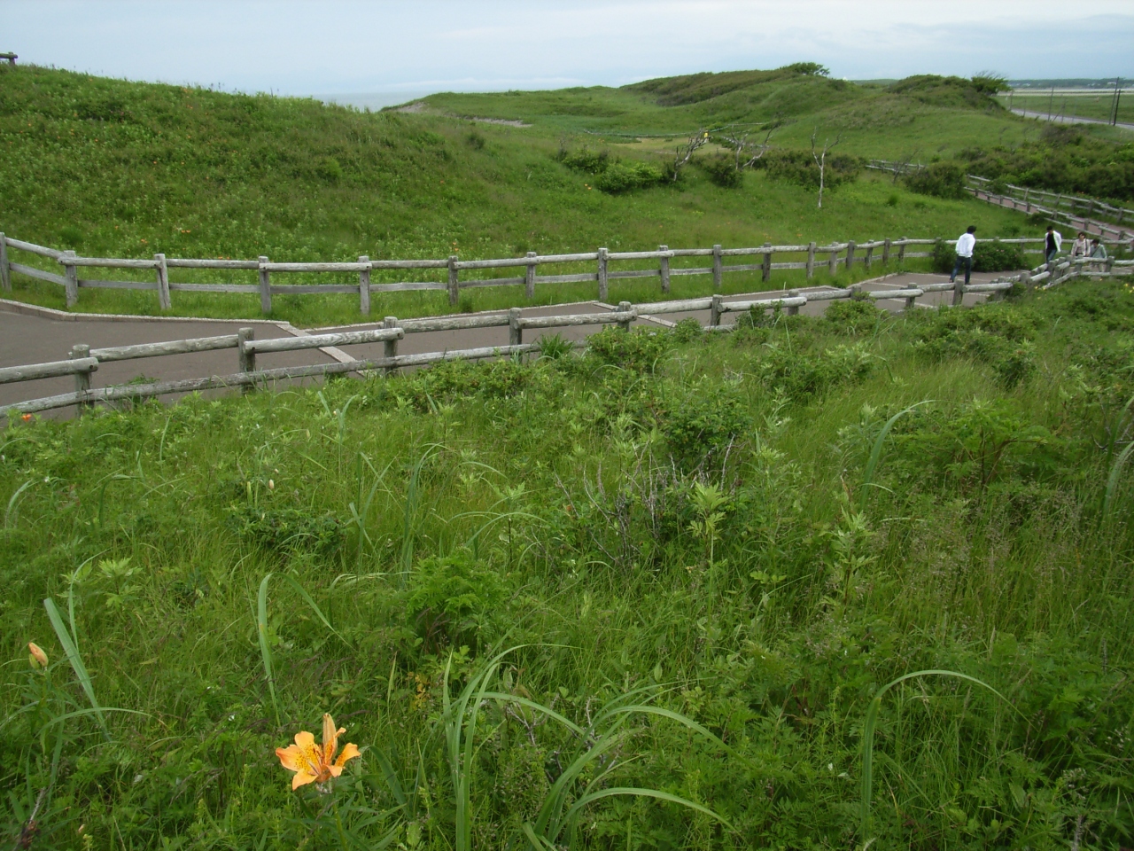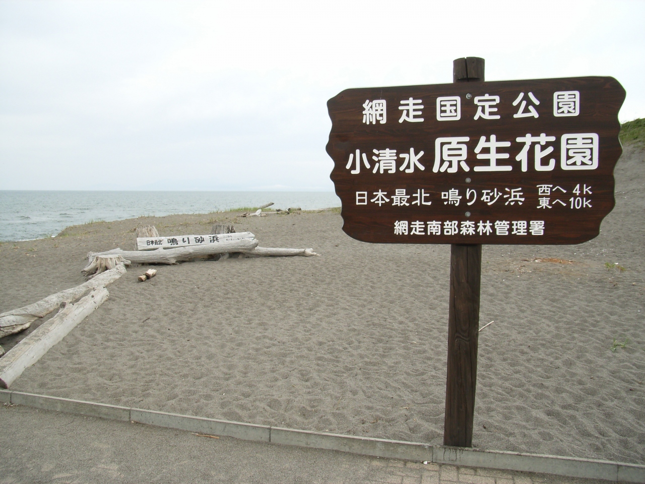 オホーツク海と湖に囲まれた細長い土地にできた花園と砂丘です。短い北海道の夏に、ハマナス、ゆり、キスゲ、はぎ、あやめなどが咲き競います。原生花園駅の前にありますが、列車の本数が少なく、車でない場合は、計画的な行程を考える必要があります。また花園のそばには鳴り砂海岸があり砂の上を歩くとキュキュと音がします。不思議な海岸です。