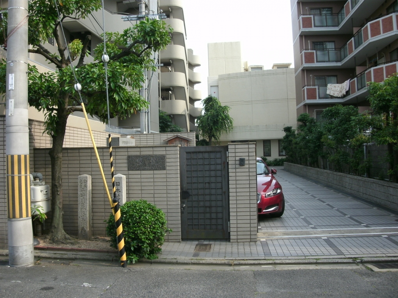 「六角獄舎跡」は、阪急電車の大宮駅から北へ歩いて10分足らず、武信稲荷神社の南側の財団法人盟親(更生保護施設)の正門付近にその石碑があります。一見、マンションの入り口の様で、わかりにくいですが、施設入り口の外側の左手に「勤王志士平野國臣外十数名終焉之地」と、「日本近代医学発祥之地」の小さな石碑が立ち、正門を入って直ぐ左手に「殉難勤王志士忠霊塔」と「山脇東洋観臓之地」の大きな石碑が二つ並んでいるので、よく見たら判ると思います。