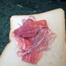 バル マルシェ コダマ エキュート品川店に有ります、ここでは、生ハムを使った食パンによるサンドイッチを作って食べる事をおすすめします。立派なサンドイッチとなります。ぜひ、一度、生ハムを食べに行ってみてください。