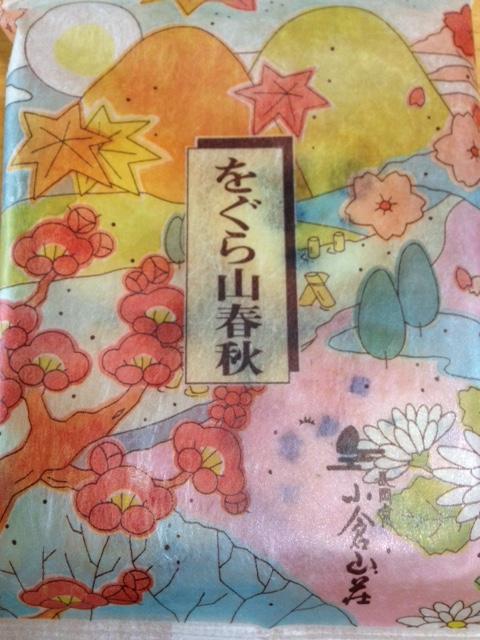 写真は「をぐら山春秋」です。この日は、新宿高島屋の小倉山荘で一番人気の同商品を購入しました。小倉山荘にはいろいろな商品がありますが、やっぱりこれが最も好きです。小さなパックに八粒のあられが入っています。