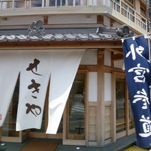 今日は伊勢市の観光です。伊勢市駅から外宮参道を通って外宮へいきます。「若松屋 (外宮前店)」は、その参道の外宮前右手の角にあります。おしゃれな外観をしていますね。店内にはいると、海産物の加工品が多種並べてあります。その中でも「参宮あわび」は特産のようです。しかし、いい値しますね。我々庶民に手ごろなのは、子持しぐれ、ちりめん、と言ったところでしょうか。どれも美味しそうです。お土産にどうぞ。。。