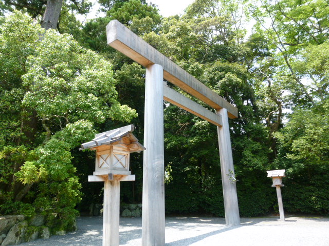 今日は伊勢神宮の散策です。まずは外宮で、伊勢市駅から参道を通ってきました。観光案内所でもらった地図を見てまわります。風宮や土宮など別宮もたくさんあるようです、まずは入口左手の「せんぐう館」へ入って予備知識を習得するのもいいでしょう。きれいな池もあるようです。さぁ、伊勢神宮・外宮です、参拝し御利益をいただきましょう。