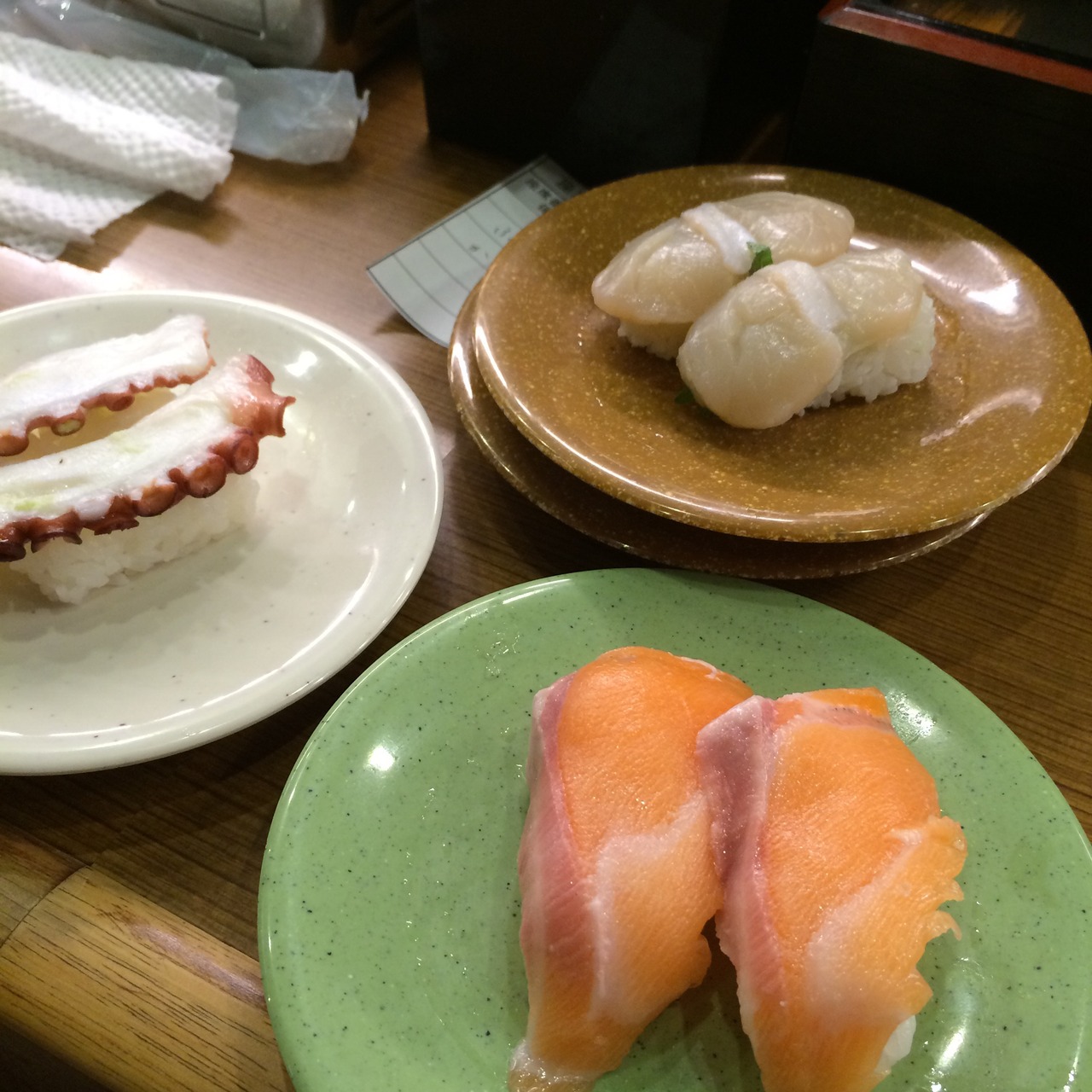 九州横断道路沿いの回転寿し屋さんです。夜に行ったのでネタ切れ続出でしたが、とても大きくて新鮮で美味しいです。3.4組待ちでしたが回転が速いのですぐに順番は回ってきました。回転寿しですがほとんど回っておらず、紙に書いて注文するシステムです。