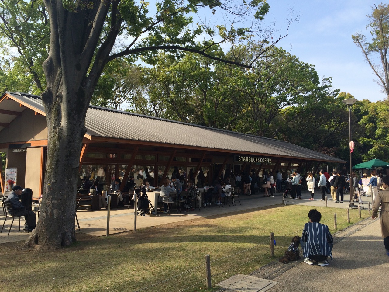 公園内にあり自然豊かな場所に横に長い建物が1軒だけぽつんと建っています。ビルの中の店舗はないが良いです。休日に行ったのでかなり待たされました店外にもテラス席があり、日向ぼっこしながらコーヒータイムでした。