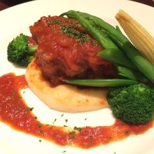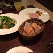 レストランはミシュランで星を獲得しているという有名店のようですが、こちらはカフェということもあって、気軽な雰囲気です。メニューはビストロ風でパテやサラダ、肉料理を1品ずつ頼んで二人でシェアしましたが、女性同士だったので十分でした。