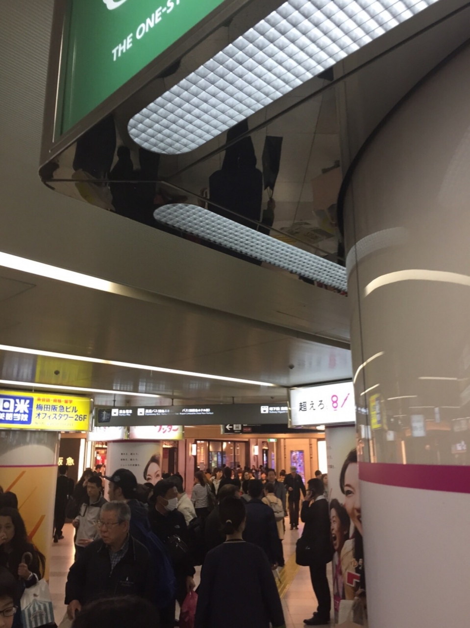 阪急百貨店のすぐ近くのエスカレーターから降りるとこの阪急サン広場地下通りがあります。
