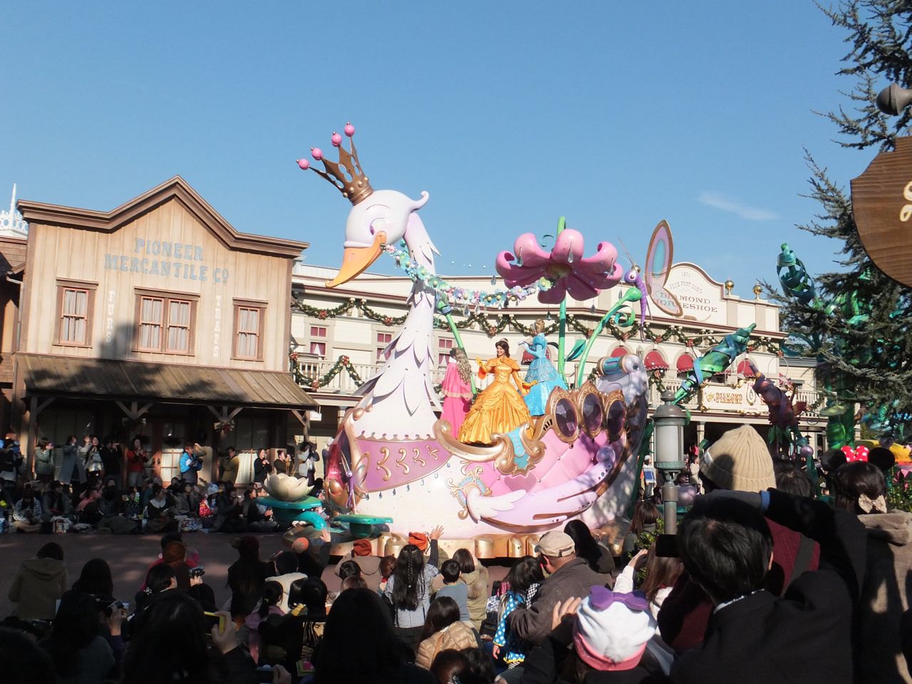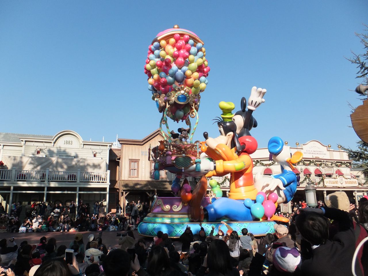 お昼すぎから始まる、ディズニーの30周年記念の曲に乗ってすすむパレード。