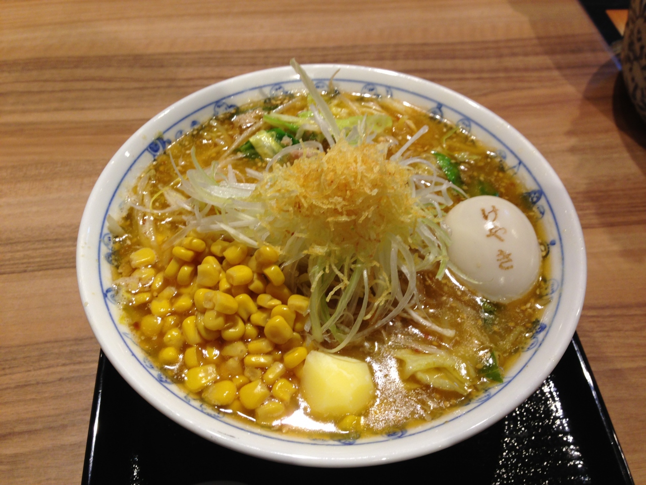 新千歳空港3Fの「北海道ラーメン道場」にあるラーメン店の一つで、ニトリフーディング(お値段以上の会社とは関係ないようです)という会社が経営しており、道内にはすすきのほか北広島にある三井アウトレットモール赤レンガモールなどにもお店があります。札幌市内には「欅」という名前のラーメン屋がほかにもあるので「にとりのけやき」で差別化を図っています。茹で卵に「けやき」という焼き印が押してあるることも特徴。ややピリ辛風味の濃厚な味噌味のスープ(ベースはスープは豚のゲンコツや背脂、鶏、野菜など。味噌は大豆みそや麦みそなど)で、さらにたっぷりな野菜の甘みが、マイルドにきいています(ただし少し脂っぽいかも)。麺は中太縮れ麺でスープによく絡みます。新千歳空港でフライトの待ち時間があるとき、まさに北海道から離れる前に行くお店の一つです。