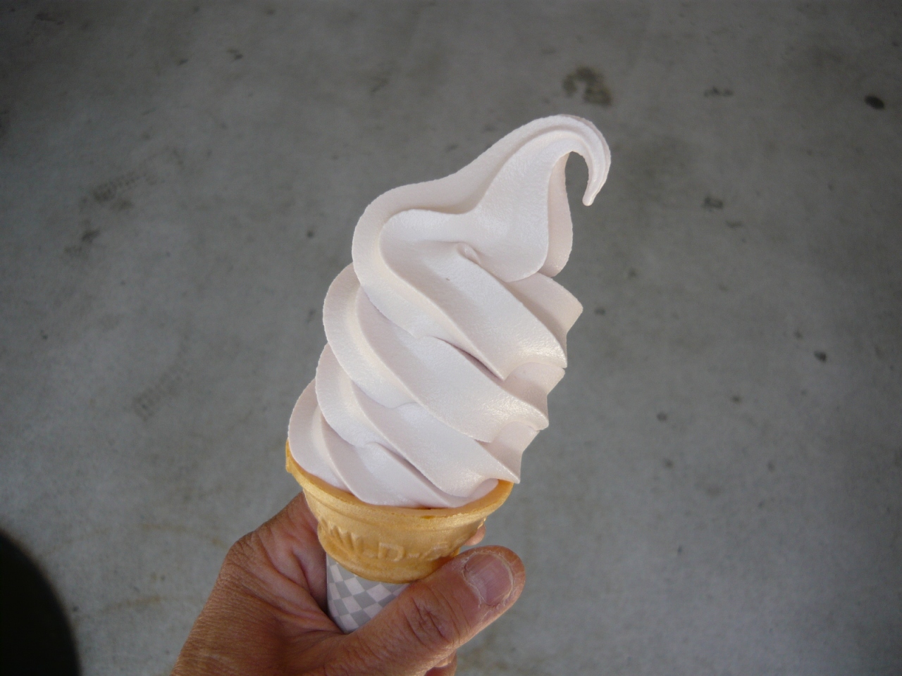 1階の売店で“木苺のソフトクリーム 350円”を買って、ダムを見ながら頂きました。木苺のソフトは、ほんのりと甘酸っぱくて美味しかったです。ソフトは木苺の他にもリンゴ、バニラ、抹茶、モカコーヒー、ダムダム君(チョコレートソースがかかったカップ風のもの)など、6種類ありました。