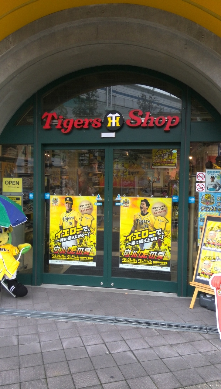 阪神甲子園駅から国道43号線の高架をくぐると甲子園球場があります。球場の建物内野スタンド裏側に当ショップがあります。オリジナル商品などこちらでしか手に入らないものがありますので、試合観覧の前後にぜひお立ち寄りください。