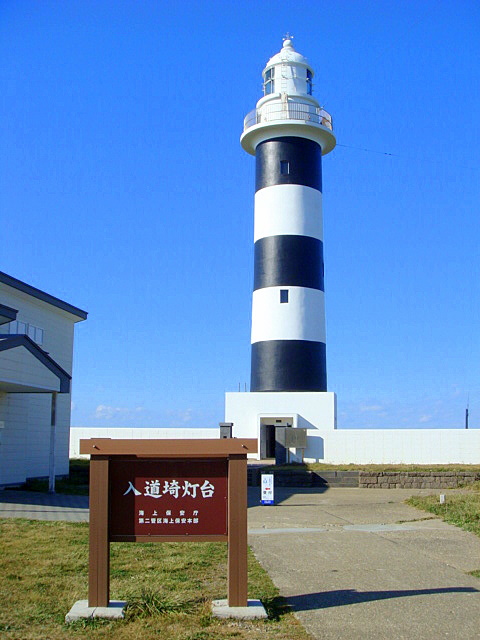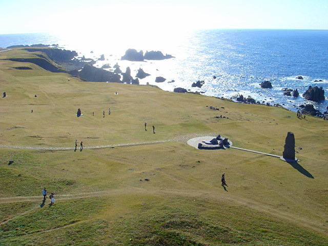 10月だと芝生も緑から茶色に・・・・白黒の灯台に登ると周りは何も遮るものがありませんでした。雲一つない青空に灯台も芝生も映えました。でも、風が冷たく寒かった・・・やはりここは日本海側なんですね。ロシアは見えませんでした。