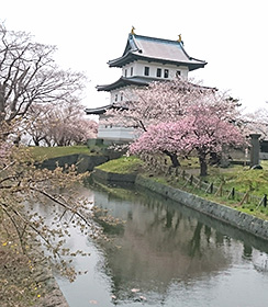 公園の手前(海側)に松前城<入場有料>や露店が集まったエリア、奥に光善寺や桜見本園、さらに奥には松前藩屋敷<入場有料>などがあり、見応えがありますね。