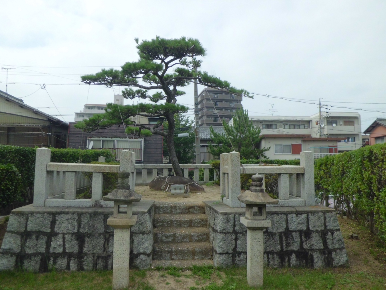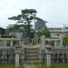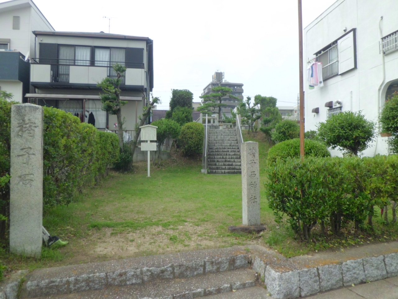 香流川と出来町通りの間、住宅街にあります。非常にわかりづらく、住宅に挟まれた空地にありますが、見過ごしてしまいそうです。鳥居や社はありません。注意して通ると、入口に石碑、案内板があり、奥に、台座の上に、石に半分埋もれた石があります。寝そべっている猪に似ていることから、名付けられたそうです。この石は、触ると祟りがあるそうです。