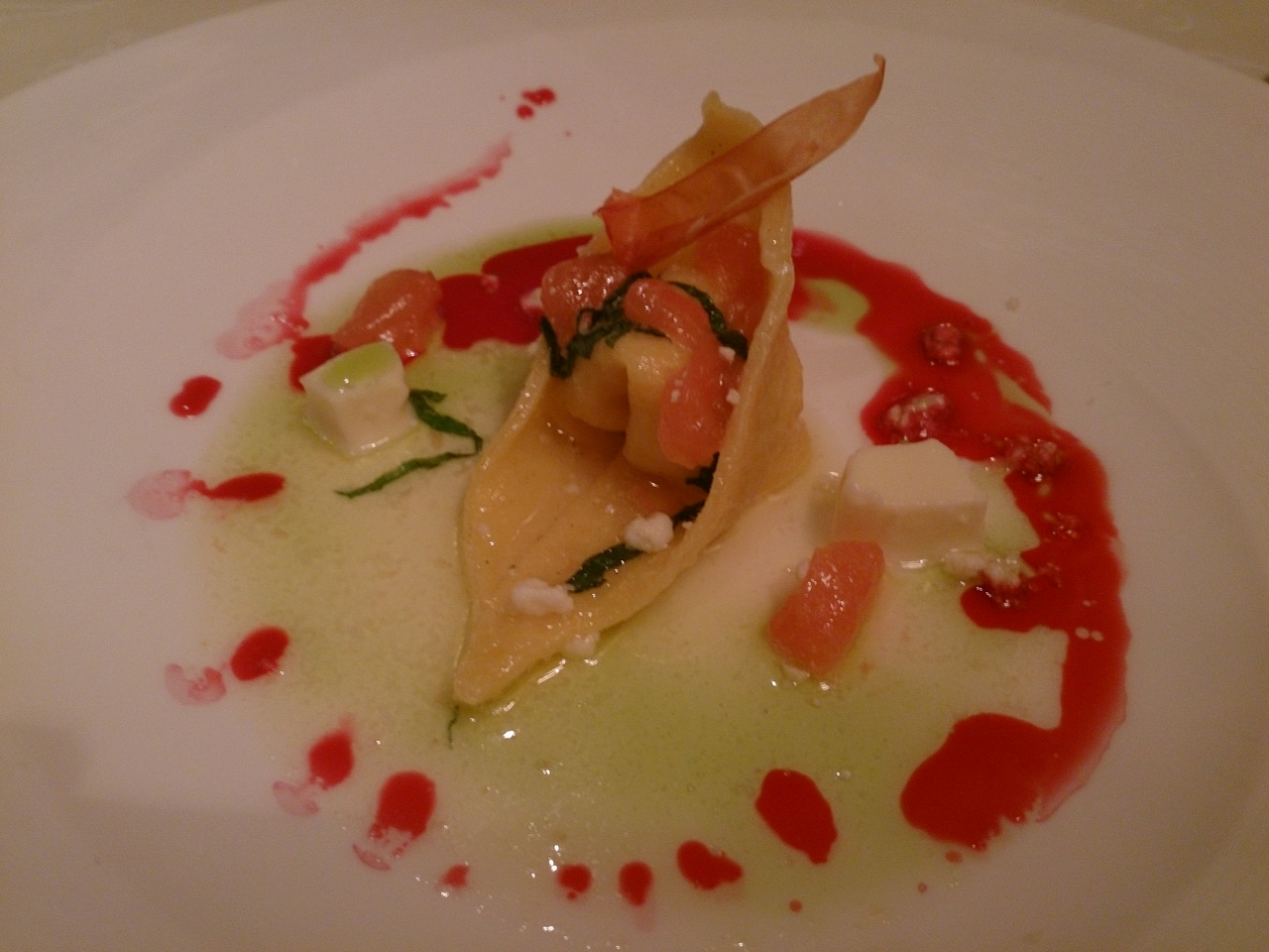 なんとも贅沢ですが、11,000円のディナー。照明を落とした中でピアノ演奏を聞きながら優雅なお食事。まずはフォカッチャを食べつつ、フォアグラソテー。続いてポルチーニの温かいスープの上にはトリュフが。次は甘いとろとろオニオンが入ったラビオリ。メインはキンキのフライ。デザートはピスタチオとストロベリーが層になったティラミス、マカロン、コーヒー。上品な高級イタリア料理が肩肘張らずに比較的カジュアルにいただけ、素晴らしい接客と美味しいお料理に感動しました。