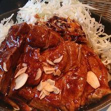 こちらはトンテキをバルサミコ酢やマヨネーズ、七味などでいただきますが、ボリュームたっぷりでお腹いっぱいになれます。