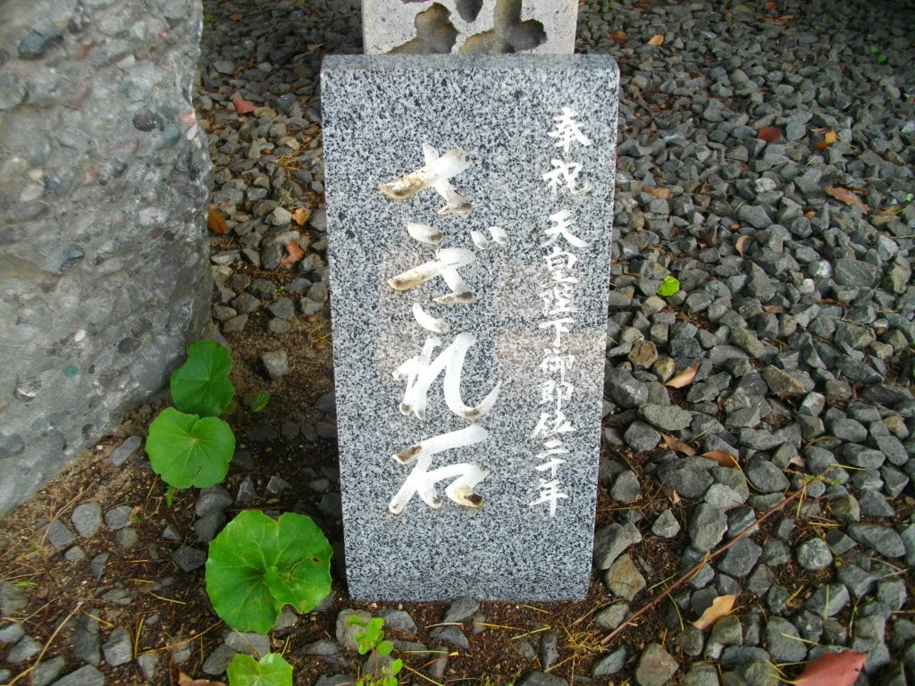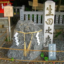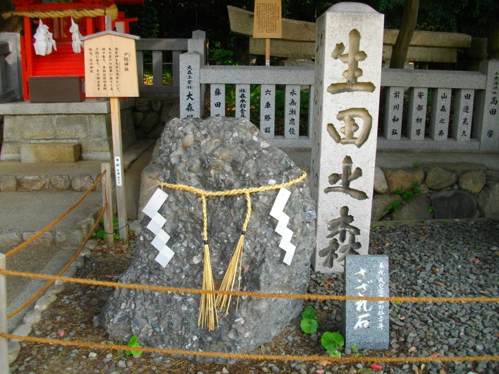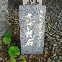 君が代などに出てくるさざれ石です。本物(?)見たのは初めてですが、大きな砂利(石)が混じったセメントにしか見えなかった。でも、勉強になりました。場所は、生田神社を入って、本殿左側奥にあります。戸隠神社のすぐそばです。
