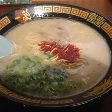 博多ラーメンの中でも、独特のシステムの一蘭。ラーメンを食べることに集中するための仕切りやオーダーシステム、店員さんの確認のやり方、空席案内板などは、本場博多と同じ。ガイドブックにも載っているらしく、中国人観光客も多い。味の濃さ、こってり度、にんにくの量、ネギ(なし、白ネギ、青ネギから選択)、チャーシュー(あり、なし)、秘伝のダレの量、麺のかたさを、あらかじめ選ぶ。水は各席に設置されたサーバーから、替え玉は呼び出しボタンを押して、札を持っていってもらうか、はし袋に書くやり方で、無駄のないシステムになっている。替え玉の際のチャルメラも博多と同じです。味は、博多で食べた一蘭と同じく(当たり前ですが)、脂っこすぎず、豚骨の臭みのないスープと、細麺がよく絡み合います。休日はランチ時間を外しても並ぶときがあり混雑。お一人様優先がないので、カップルがいると回転が遅いのが難点。あと、博多ラーメンと替え玉で1000円のはやや高め。