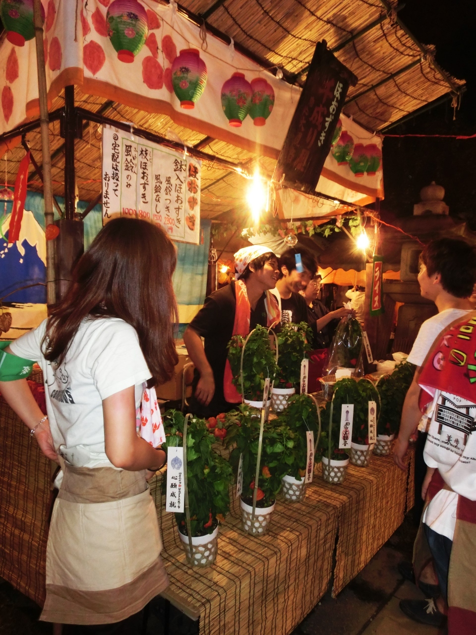 いったん途絶えていたほおずき市が地元の行事として蘇ったのは2000年でした。今はすっかり定着し、町会、商店街、学生ボランティアの方々がテントの下で頑張っています。